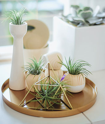 押し花を半円の花手水にレイアウトして仕上げる